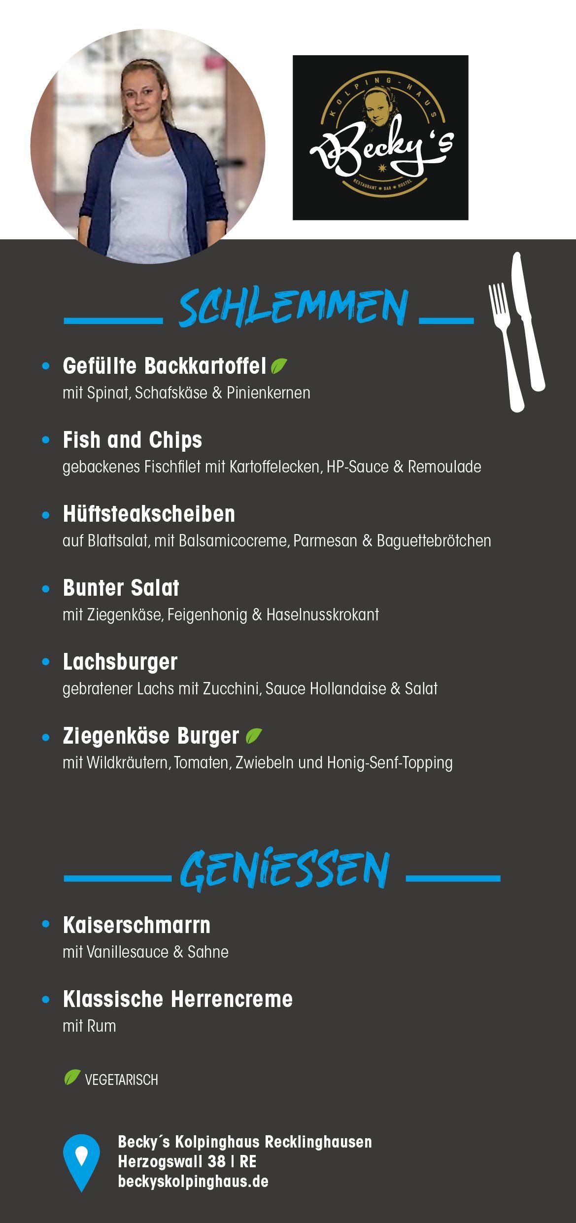 Ob gemütlich im Restaurant, mit Freunden in der Bar oder im Biergarten – in Becky´s Kolpinghaus findet jeder einen Platz zum Wohlfühlen.