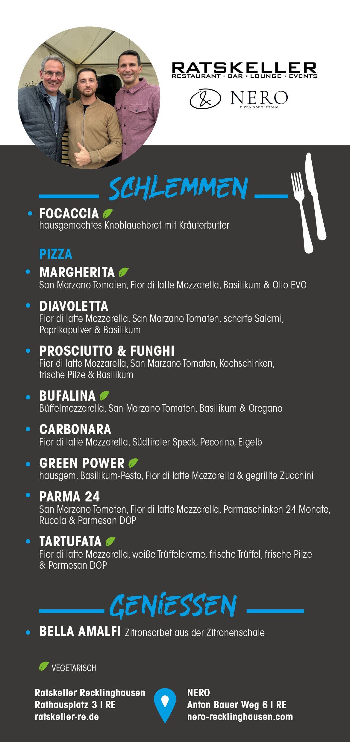 NERO - Pizza Napoletana ist durch die Idee von zwei Freunden entstanden, die den Wunsch nach der perfekten Pizza verfolgten.